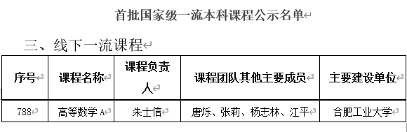 近日,教育部公示了首批国家级一流本科课程(国家“金课”)认定结果,我院朱士信教授负责的《高等数学》课程喜获国家级“线下一流本科课程”认定。这是我院在课程建设领域取得的重大突破。 《高等数学》课程是我校...