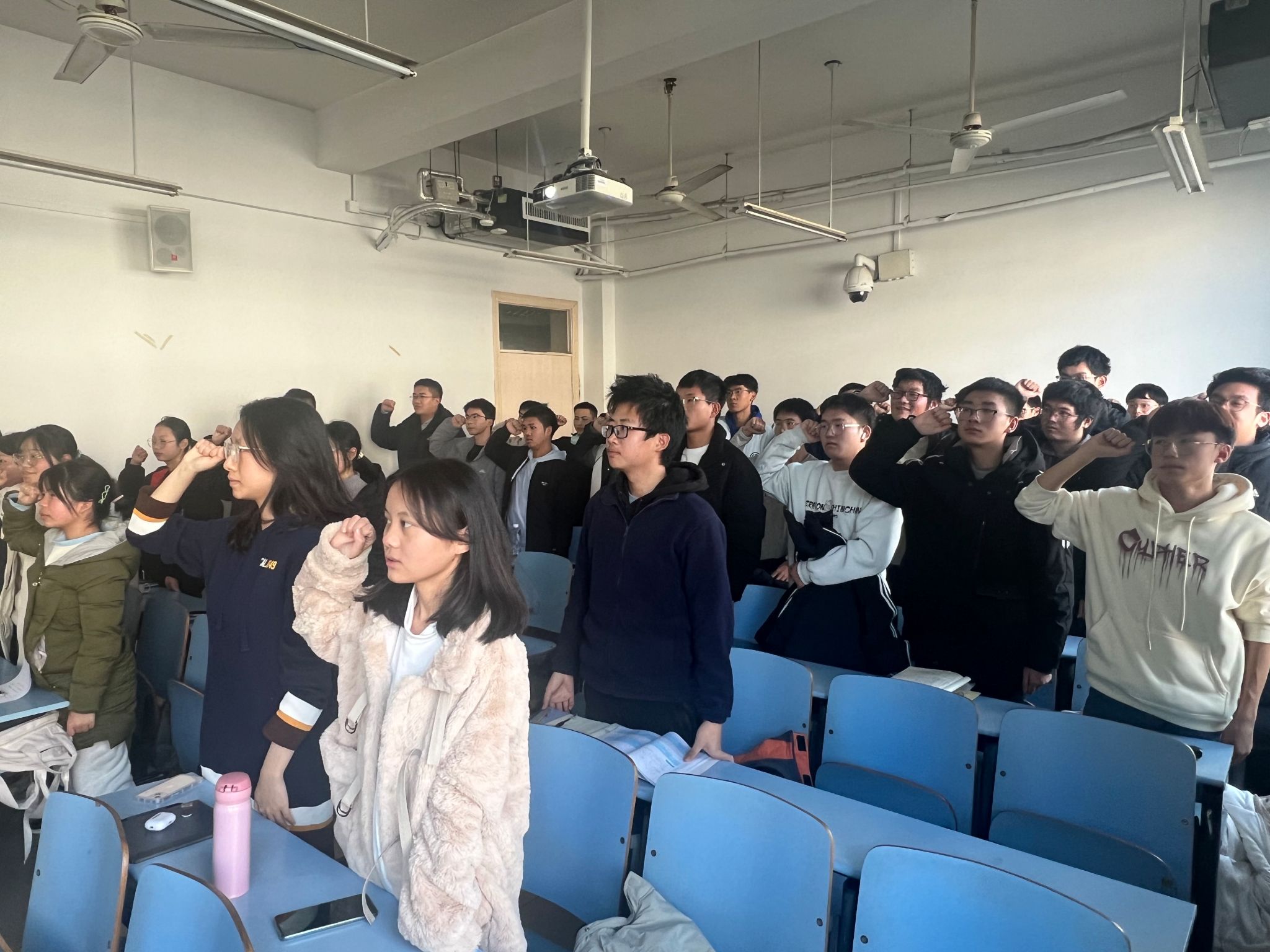 2023级本科生各班级团支部以“铸牢对党忠诚、坚定理想信念、发扬斗争精神、勇于挺膺担当”为目标任务,在团支书的带领下各团支部先后学习了习近平总书记《在庆祝中国共产主义青年团成立一百周年大会上的讲话》、《在纪念五四运动一百周年大会上的讲话》和《中国共产主义青年团章程》。各班级团支书还汇报了入学以来,团员和青年主题教育开展情况和支委会查找不足等情况。之后,团支书、支委、其他团员依次发言进行了批评和自我批评,团员们纷纷表示要对照先进团员查找不足,做出改进。最后各团支部还集体重温了入团誓词。