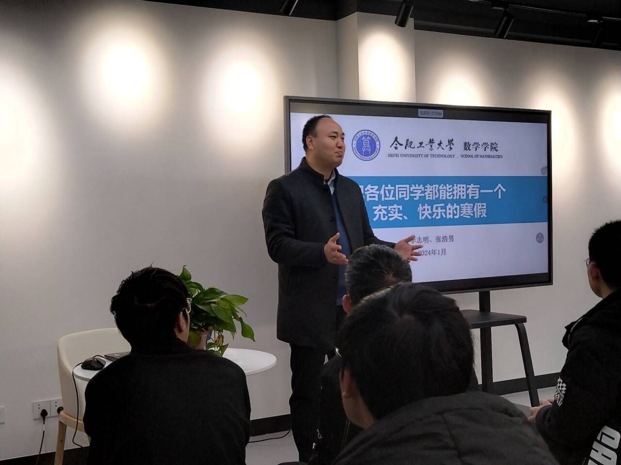 李志明在总结讲话时指出:大一学生应利用好大学生活的第一个寒假,在守住安全底线的基础上,继续保有好奇心、好胜心、好善心,深化对数学类专业的了解,利用假期时间学习充电,保持和中学同学的交流联系,积极投身社会实践,拥有一个充实、快乐的寒假。