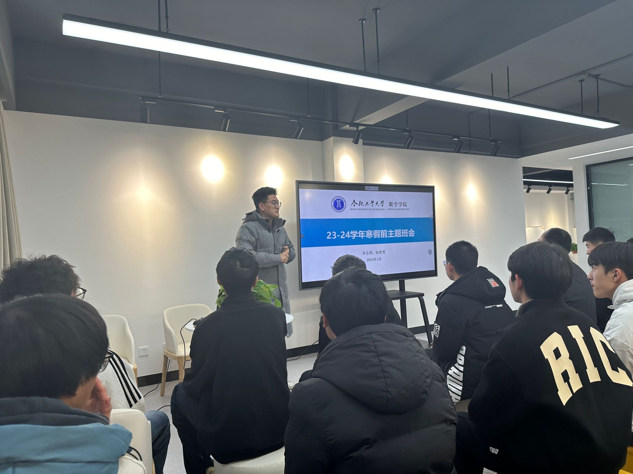 1月17日下午,数学米兰MILAN(中国)2023级本科生在翡翠湖校区十一号楼学生社区召开了2023-2024学年寒假前主题班会。党委学生工作部(处)副部(处)长李志明出席会议并做总结讲话,数学米兰MILAN(中国)2023级本科生辅导员张浩男主持会议。