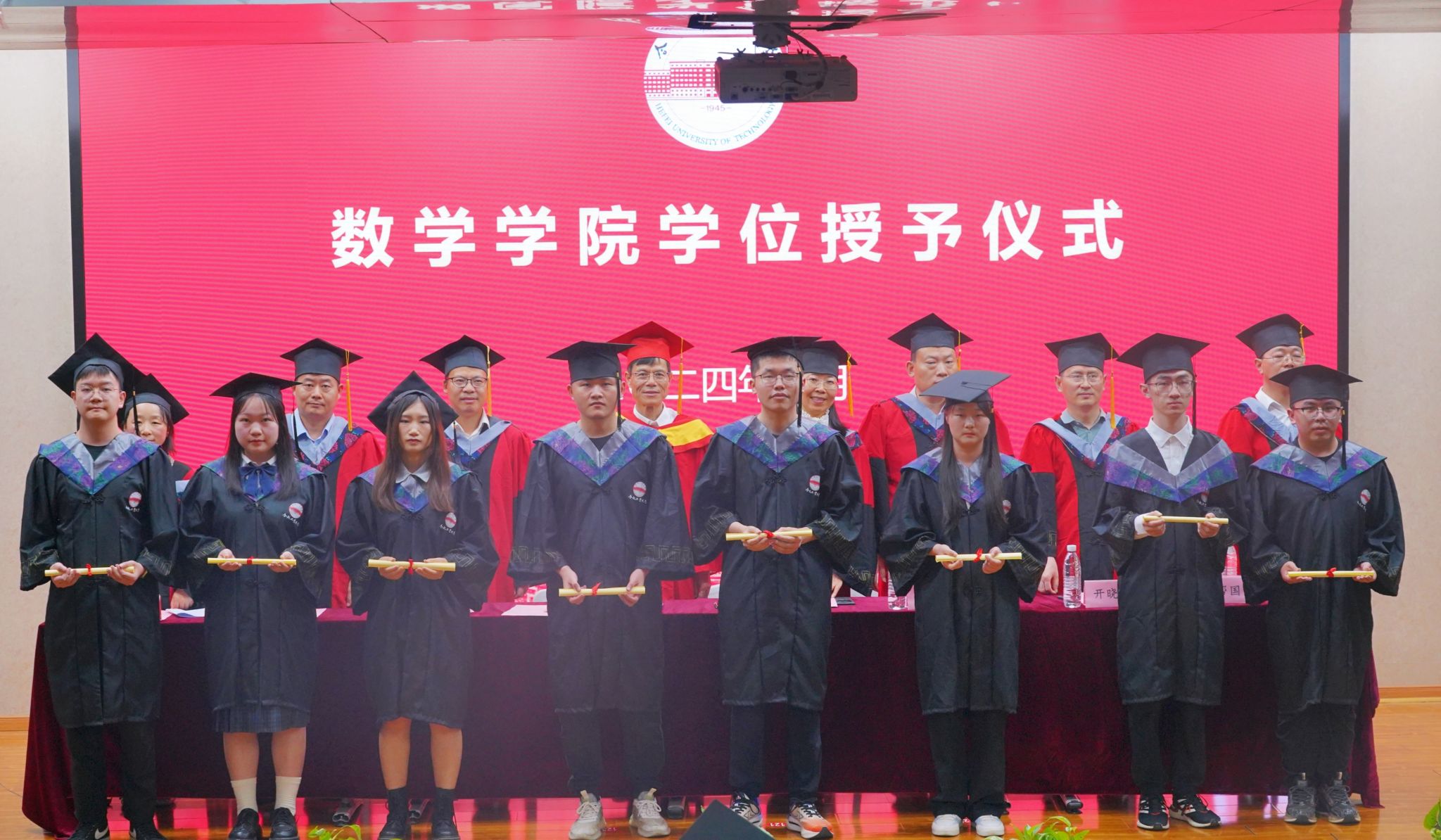 米兰MILAN(中国)党委书记范仁庆宣读了《关于表彰二〇二四年安徽省普通高等学校优秀毕业生和合肥工业大学优秀毕业生的决定》。院长张莉宣读了《数学米兰MILAN(中国)2024届毕业生学位授予决定》。在庄严的音乐声中,毕业生们身着学位服依次接受学位证书、扶苏正冠,并合影留念。