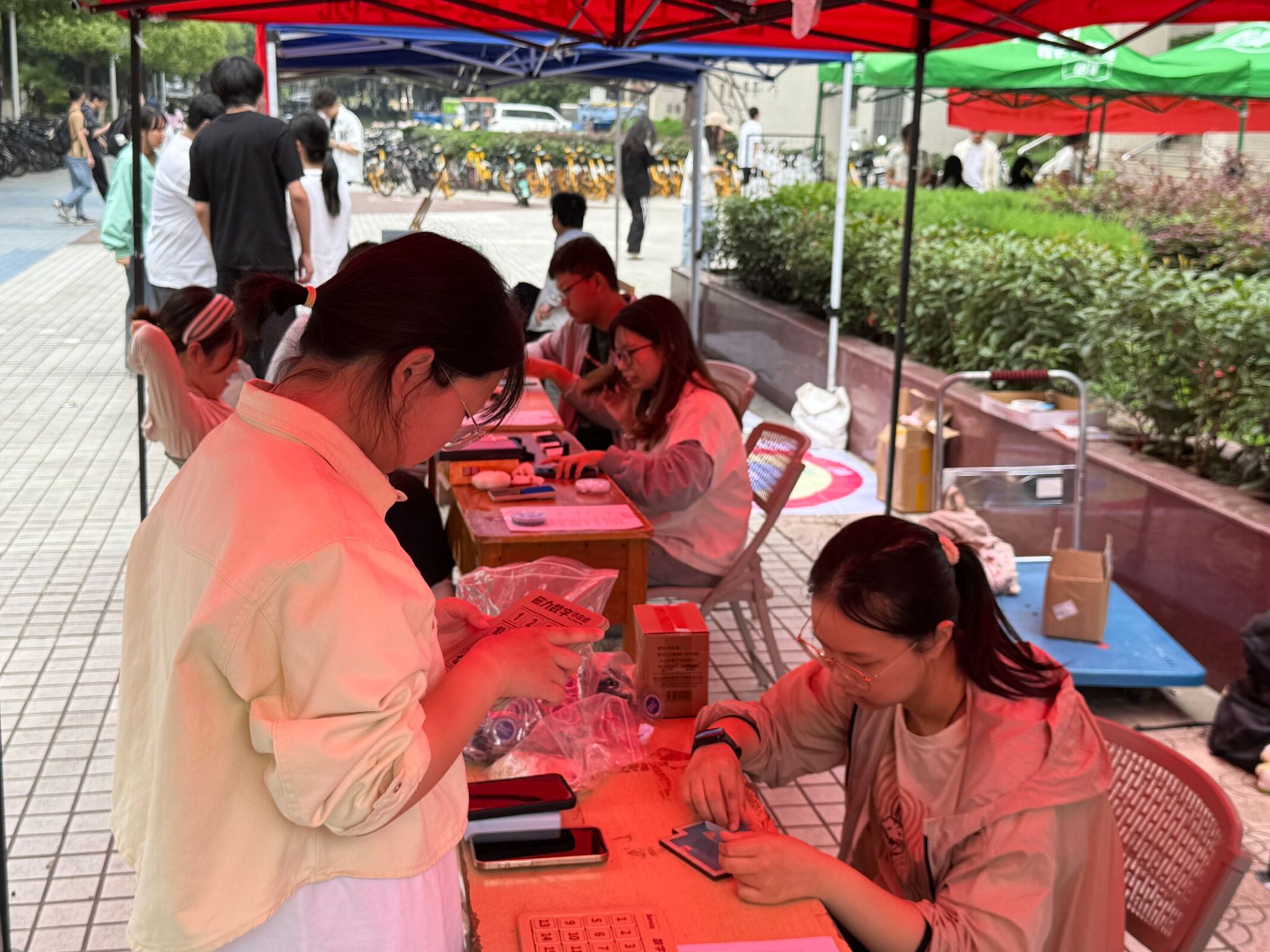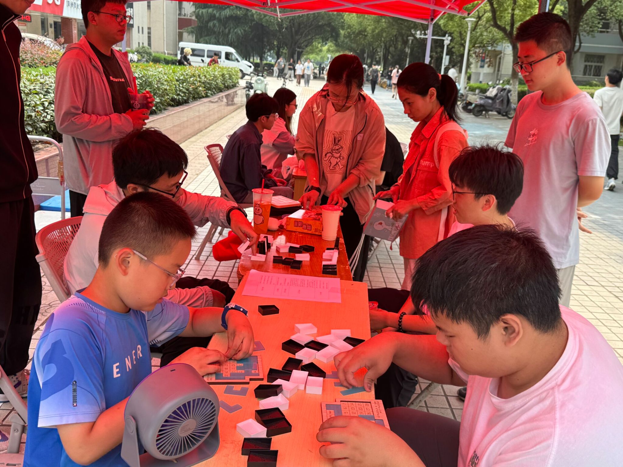 活动尚未正式开始,广场上已聚集起不少同学,大家眼神里满是期待,或三两结伴讨论着活动内容,或好奇打量布置好的活动区域,等待着活动的开始。活动过程中,工作人员各司其职,引导参与同学有序体验。一道道巧妙设计的数学题,像磁石般吸引着大家,有人皱眉思索,有人灵感乍现后欢呼,思维的火花激烈碰撞。现场参与同学热情高涨,大家在活动里收获满满,有同学说通过谜题挑战,发现了数学解题新角度;也有人表示从文化展示中,重新认识了数学的魅力。活动结束后,好评如潮,参与活动的同学们交流着活动中的精彩瞬间。