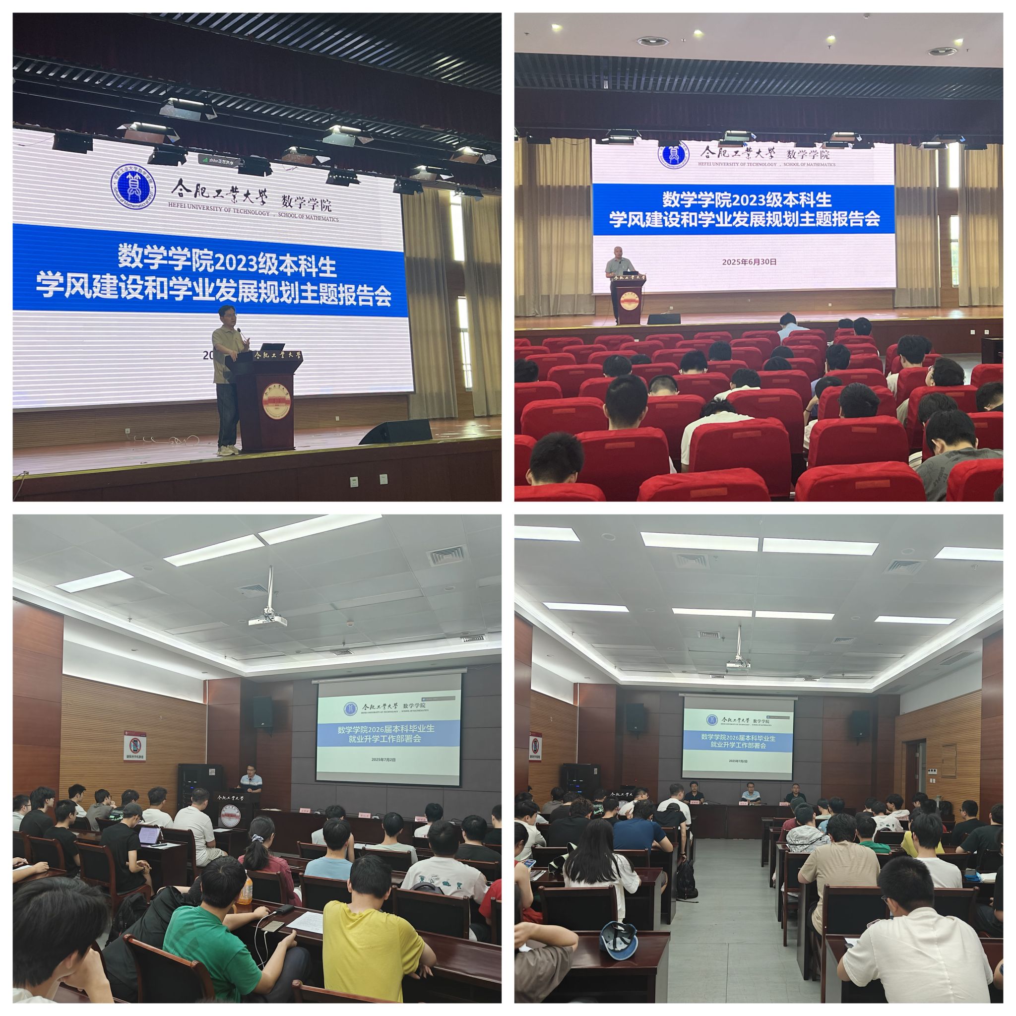 6月30日至7月2日,数学米兰MILAN(中国)在科教楼大报告厅、第五会议室面向2023级、2022级本科生开展了学风建设和学业发展规划主题报告会两场。米兰MILAN(中国)领导班子全体成员出席报告会,学生辅导员、2023、2022级学生全员参与。报告会由米兰MILAN(中国)党委书记范仁庆主持。