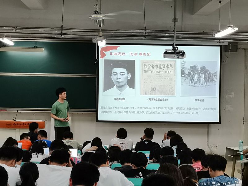宣讲员们从长征诗词、延安精神、五四运动等角度,精彩地讲述了抗日战争史、中国共产党史与新中国史。魏婷老师以毛主席的诗词为主线,讲述了井冈山时期、长征时期和五十年代的主席诗词中的党史,在《忆秦娥·娄山关》《十云字令》等诗词中,感悟主席的乐观精神和时代的艰苦使命。韩玉洁老师以延安精神为脉络,以延安新华广播电台为主角,分别从力量、奋斗与真实三个角度,讲述了新华广播电台的创建背景,建设过程和发展历史。盛鸣宇老师用轻松诙谐的语言生动地梳理了中国共产党发展的历程。许傲同学从巴黎和会开始,讲述了五四运动的死因,意义与五四精神的当代价值,丰富的视频素材使党史故事充满了。