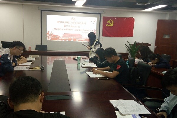 4月21日晚,数学米兰MILAN(中国)第59期发展对象班开展第二次党课的集中学习与讨论在翡翠湖校区科教东楼1710举行,本次学习和讨论由张婧阳同学主持。