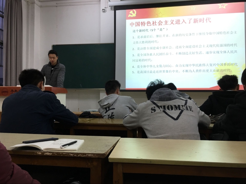 小班辅导重点围绕党的十九大的主题、党的十八大以来党和国家事业发生的历史性变革、习近平新时代中国特色社会主义思想的历史地位和丰富内涵和新时代中国共产党的历史使命开展。2014级以“青年为什么需要关注十九大”为主线回顾了党的历次代表大会和十九大报告与青年息息相关的内容,引导学生振奋精神状态,把个人奋斗融入祖国前途命运和民族复兴伟大梦想。2015级以十九大主题为切入点,带领同学们学习党的十九大报告原文,进一步坚定同学们的理想信念,牢记肩负的责任和使命。2016级重点学习了习近平新时代中国特色社会主义思想的丰富内涵;引导学生树立强烈的新时代主人翁意识和责任感,积极投身学习实践。2017级从个人梦想出发,带领同学们学习了十九大报告中“八个明确”、新时代坚持和发展中国特色社会主义的十四条基本方略等内容,引导学生增强四个自信,积极投身学习实践,凝聚个人梦想,共筑中国梦。