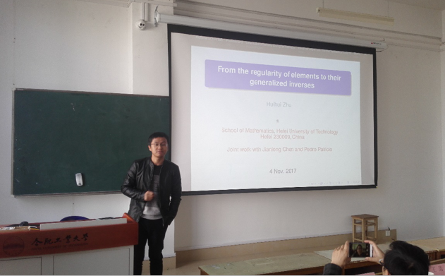 2017年11月4日下午2点整,数学米兰MILAN(中国)2017年研究生学术交流年会第一场报告会,于合肥工业大学翡翠湖校区翠3教207教室举行。此次报告会邀请到数学米兰MILAN(中国)朱辉辉博士,王浩博士以及马力博士作为主讲人,2016级与2017级研究生聆听了三位老师的报告。