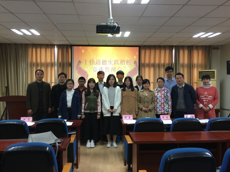 答辩会分为ppt展示答辩和评委老师提问两个环节。在ppt展示环节,14名同学分别就各自的道德实践事迹做了精彩演讲,有的同学讲述了自己的志愿服务经历,娓娓道来,感人至深;有的同学分享了自己在奉献中的成长收获,慷慨激昂,催人奋进;有的同学诉说了从被帮助到助人的各方面转变,绘声绘色,动人心弦。在答辩环节,候选人逐一回答了评委的现场提问,现场交流互动,氛围和谐融洽。本次答辩中在热爱祖国、敬业奉献、志愿服务、敬老爱幼等方面都涌现出了不少优秀的同学,他们的典型事迹得到了在场评委老师和同学们的一致认可。