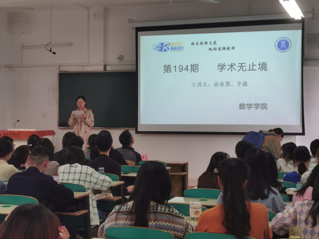 为帮助研究生进一步做好学业规划,培养研究生的学术兴趣,浓厚学习氛围,2021年11月2日下午,数学米兰MILAN(中国)于翡翠湖校区十教202室成功举办了米兰MILAN(中国)第194期研究生博睿沙龙。本期活动以“学术无止境”为主题,邀请到米兰MILAN(中国)优秀青年教师李鑫和俞童慧主讲,百余名数学米兰MILAN(中国)研究生参与活动。