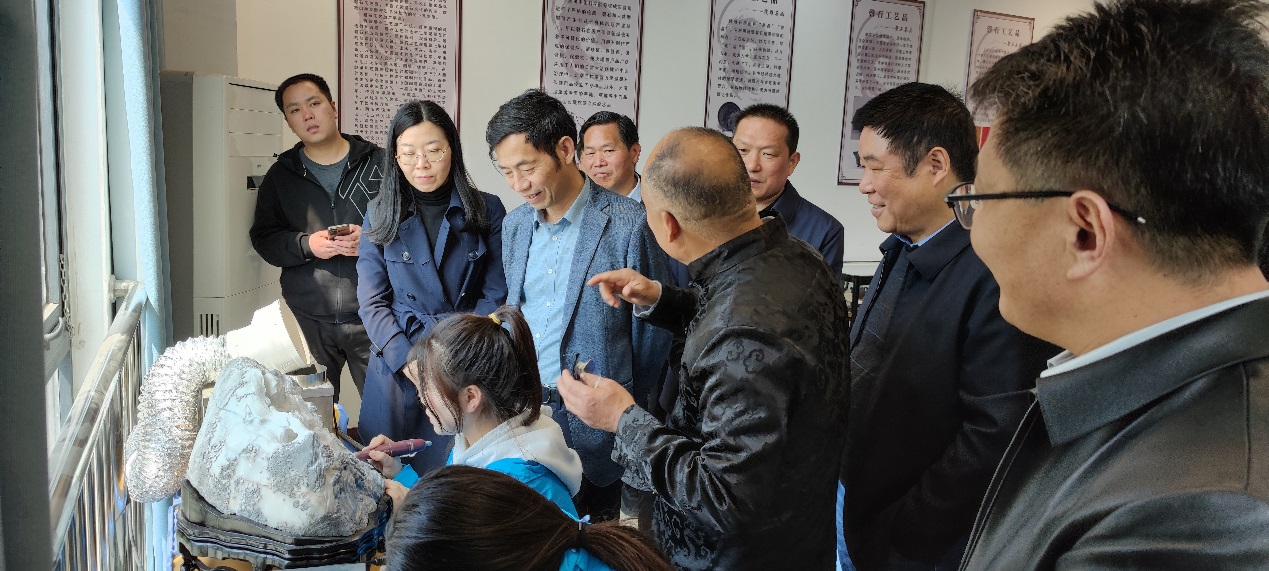 在灵璧县高级职业技术学校,朱士信教授、张莉院长一行首先参观考察了该校非遗传承米兰MILAN(中国),现场观看了磬石琴社团、剪纸社团、泗州戏社团等社团学生表演,对同学们高超技艺表示赞赏。