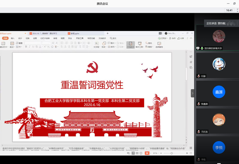 6月16日晚,数学米兰MILAN(中国)“不忘初心 不负韶华”2020届毕业生党员最后一次组织生活会在腾讯会议平台上召开。