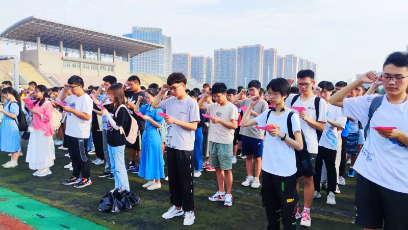 升旗结束后,在数学米兰MILAN(中国)学生代表王艺朝同学的带领下,全院学生面向国旗,许下青春的誓言:我立志成为一名有理想、有道德、有文化、有纪律的青年。勇担使命,长修厚德;崇尚科学,追求真知;修己助人,文明守纪;完善人格,强健体魄;励志笃行,创新不怠!