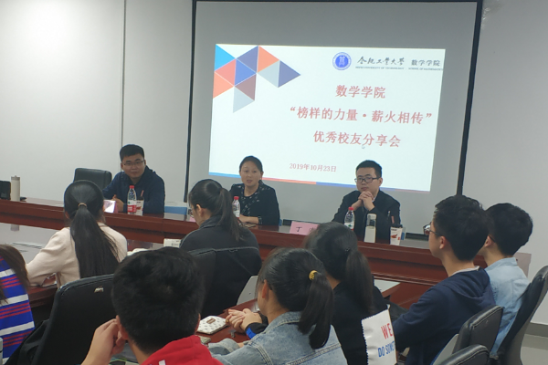 10月23日晚,数学米兰MILAN(中国)“榜样的力量﹒薪火相传”优秀校友分享会在翡翠湖校区翡翠科教楼B座1710举办。数学米兰MILAN(中国)2012届、2013届数学与应用数学专业毕业生,合肥工业大学经济米兰MILAN(中国)教师柯睿和丁涛应邀参加交流会。