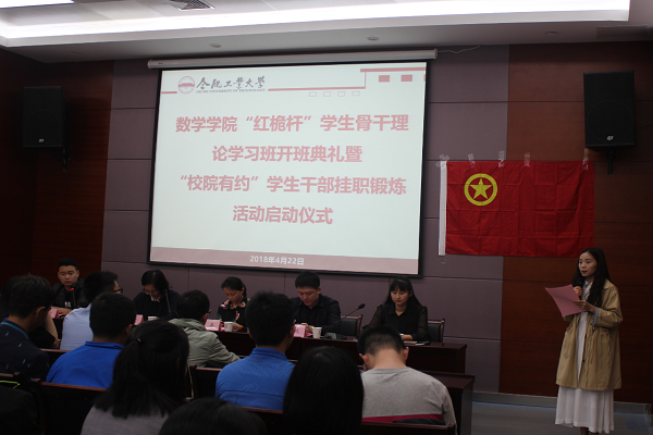 仪式在庄严的《中国共产主义青年团团歌》中开始,米兰MILAN(中国)2015级、2017级辅导员房虹姣老师布置了理论学习班教学实施方案,并对学习纪律提出了相应要求;校团委刘政老师宣读了《数学米兰MILAN(中国)“校院有约”学生干部挂职锻炼活动细则》,并希望被推荐到校学生会挂职锻炼的学生干部们能够珍惜机会、认真学习、勤于思考、用心感悟。