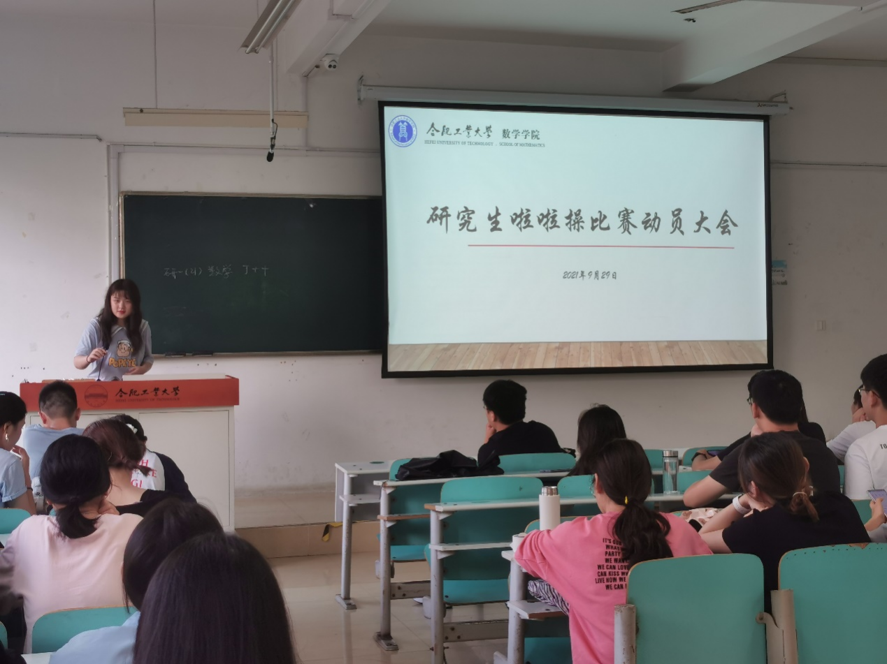 2021年9月29日下午3时,数学米兰MILAN(中国)研究生会在翡翠湖校区7教303室开展了2021级研究生新生啦啦操动员活动。会议由主席团成员曹一丹主持,研一新生们以及研会全体成员积极热情地参与了此次活动。