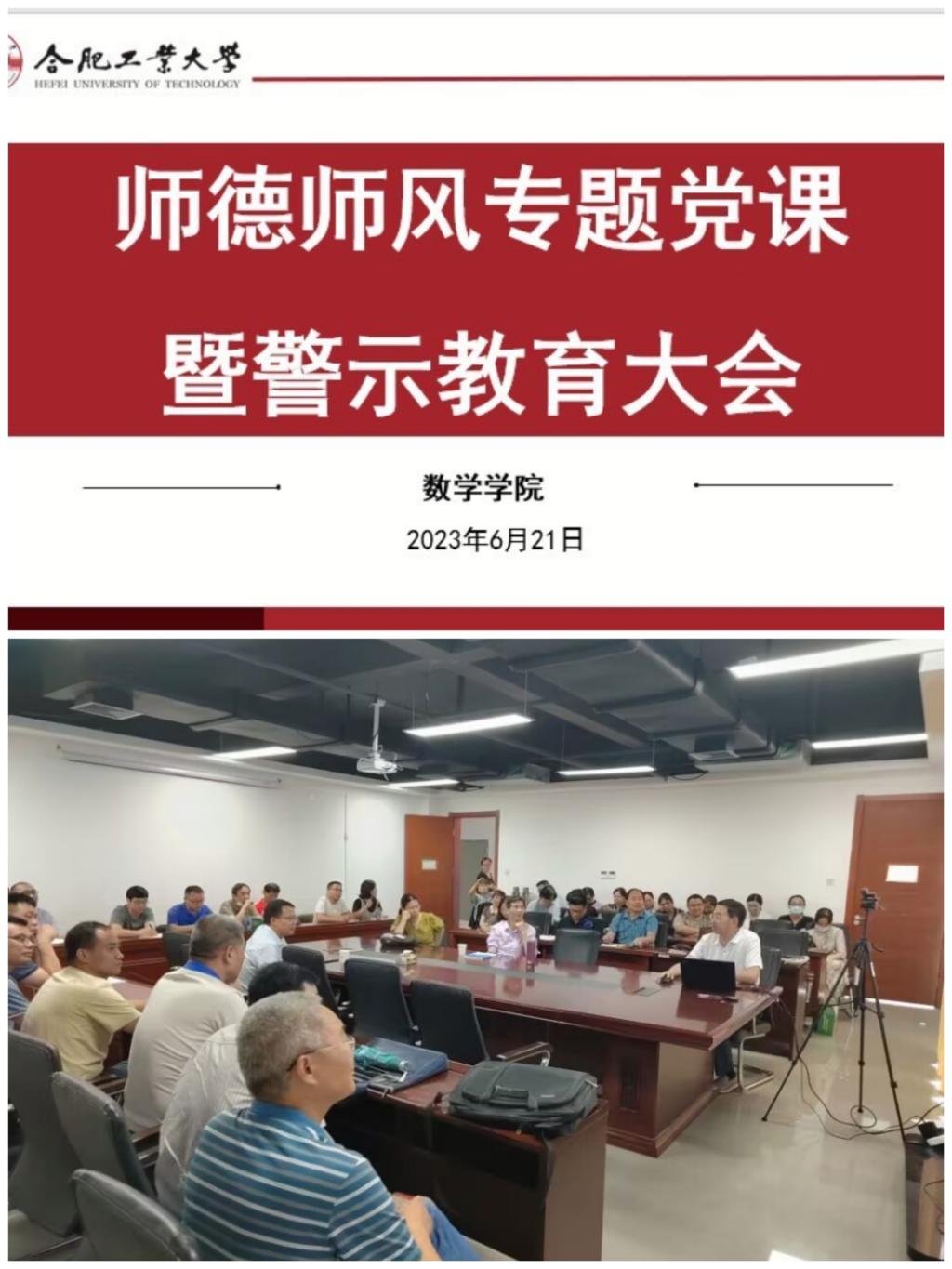 为了持续推进主题教育,扎实开展师德师风建设,6月21日下午,在翡翠科教楼1710会议室,数学米兰MILAN(中国)党委理论学习中心组组织召开师德师风专题党课暨警示教育大会。米兰MILAN(中国)全体教师参加会议。