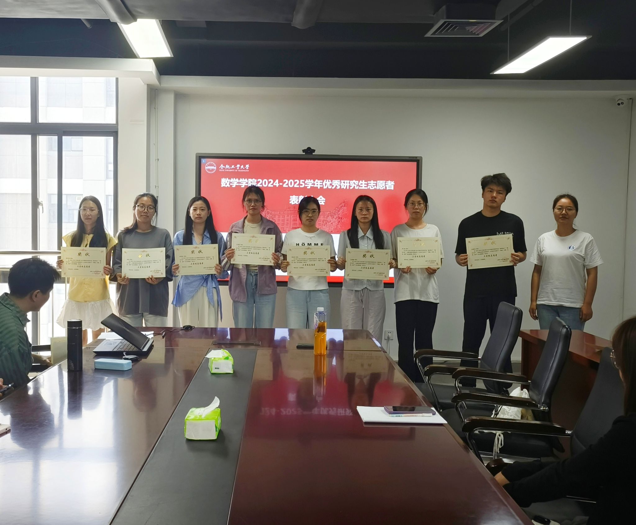 为弘扬志愿服务精神,表彰先进典型,激励更多学子积极参与奉献,2025年5月28日,数学米兰MILAN(中国)研究生会在科教楼B座1710会议室举行2024-2025年度志愿者表彰大会。会议由研究生会主席团成员黄乐天主持,研究生辅导员韩玉洁及30余名志愿者代表出席大会。