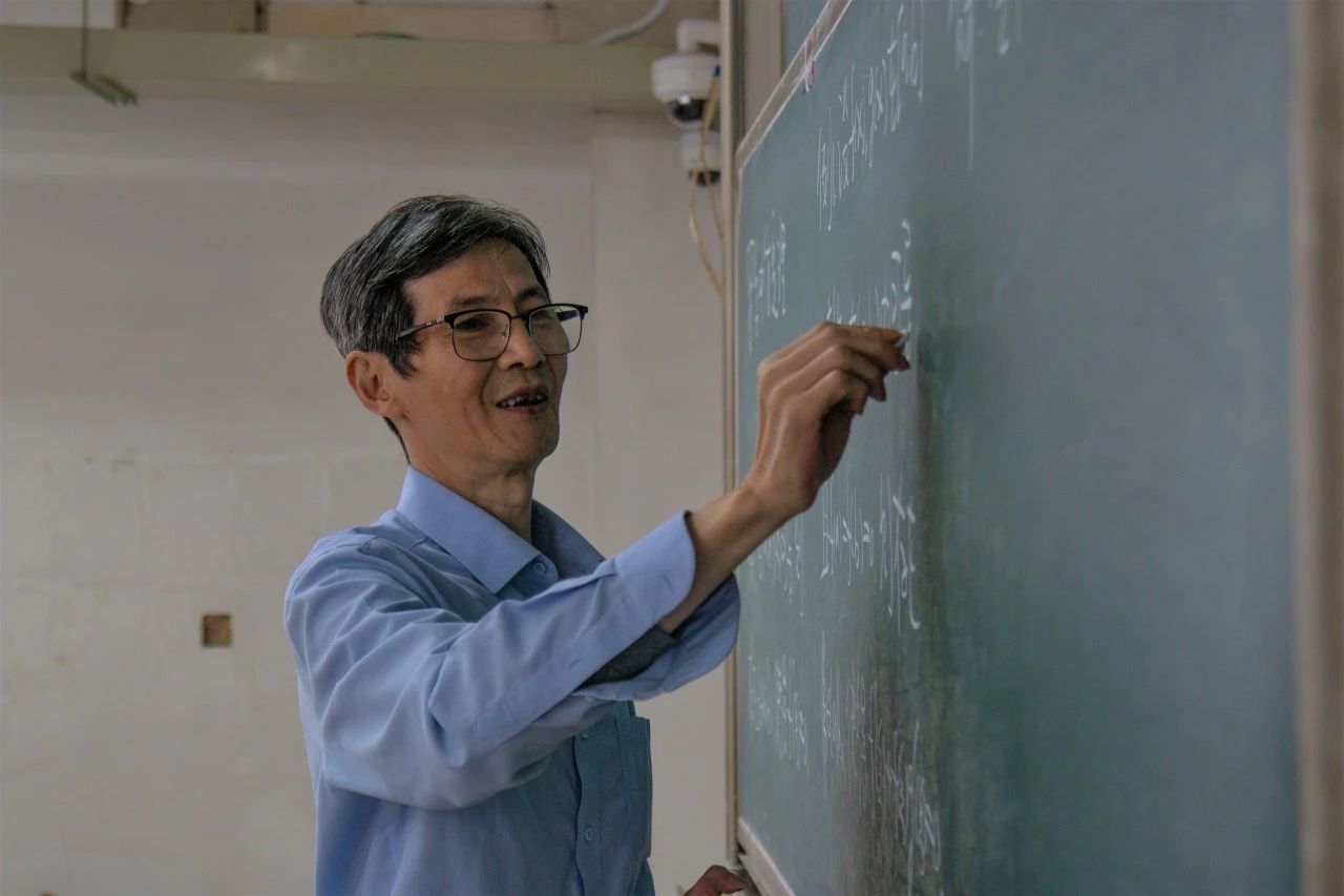 尽管多媒体教学已经相当普遍,但是遇到复杂的公式演算时,宁荣健仍然喜欢用板书为学生们推导演示。